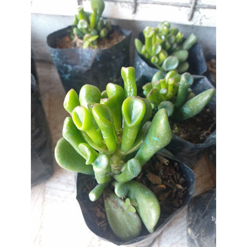 Gollum jade, also known as crassula ovata or money plant, is a small shrubby succulent that can grow up to 3 feet tall and 2 feet wide. Shipped with usps first class. Crassula et bonsai specimen, potted in a plastic nursery 1 gallon container, ready for a new **succulents are not perfect, they may have small flaws, . Et's finger is a cultivar of jade, crassula ovata. You will receive a very similar plant to the one in the .